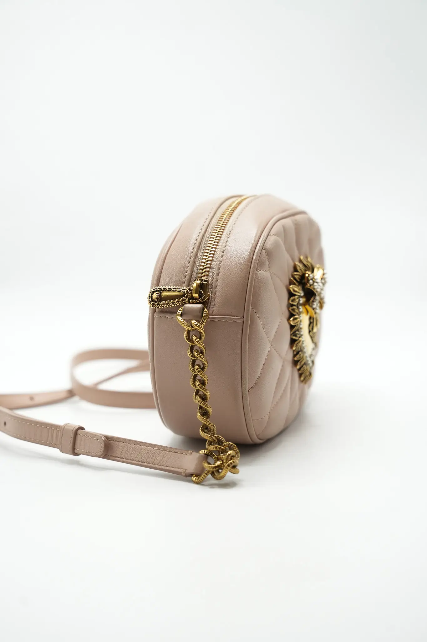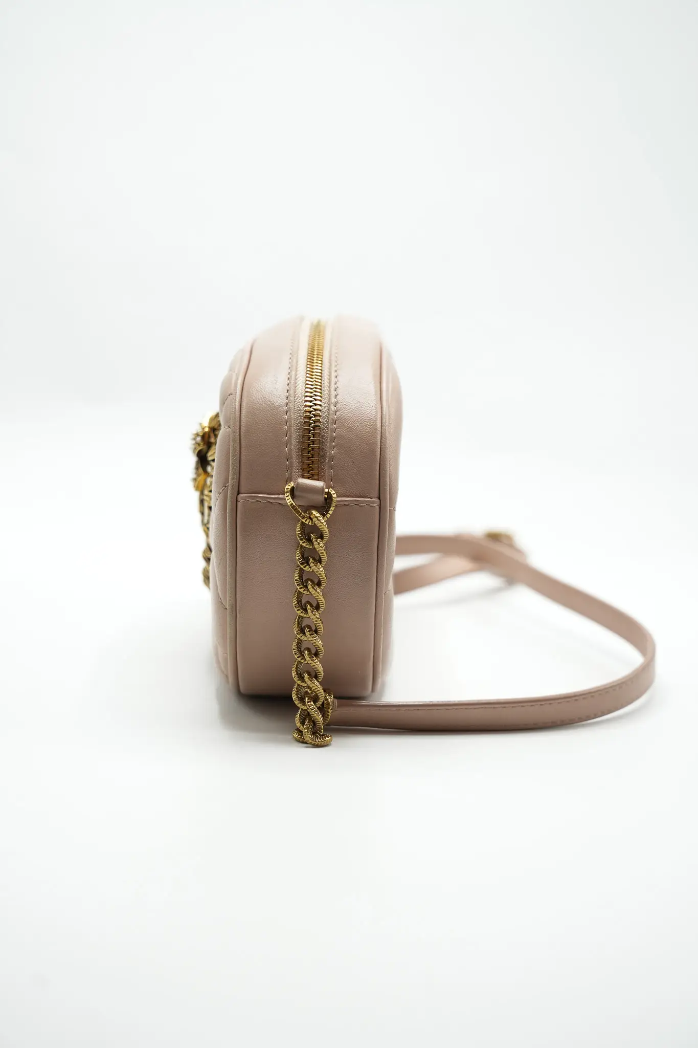 DETAY: nude renk orta kısmında pirinç metal amblemli uzun askılı kadın çantası