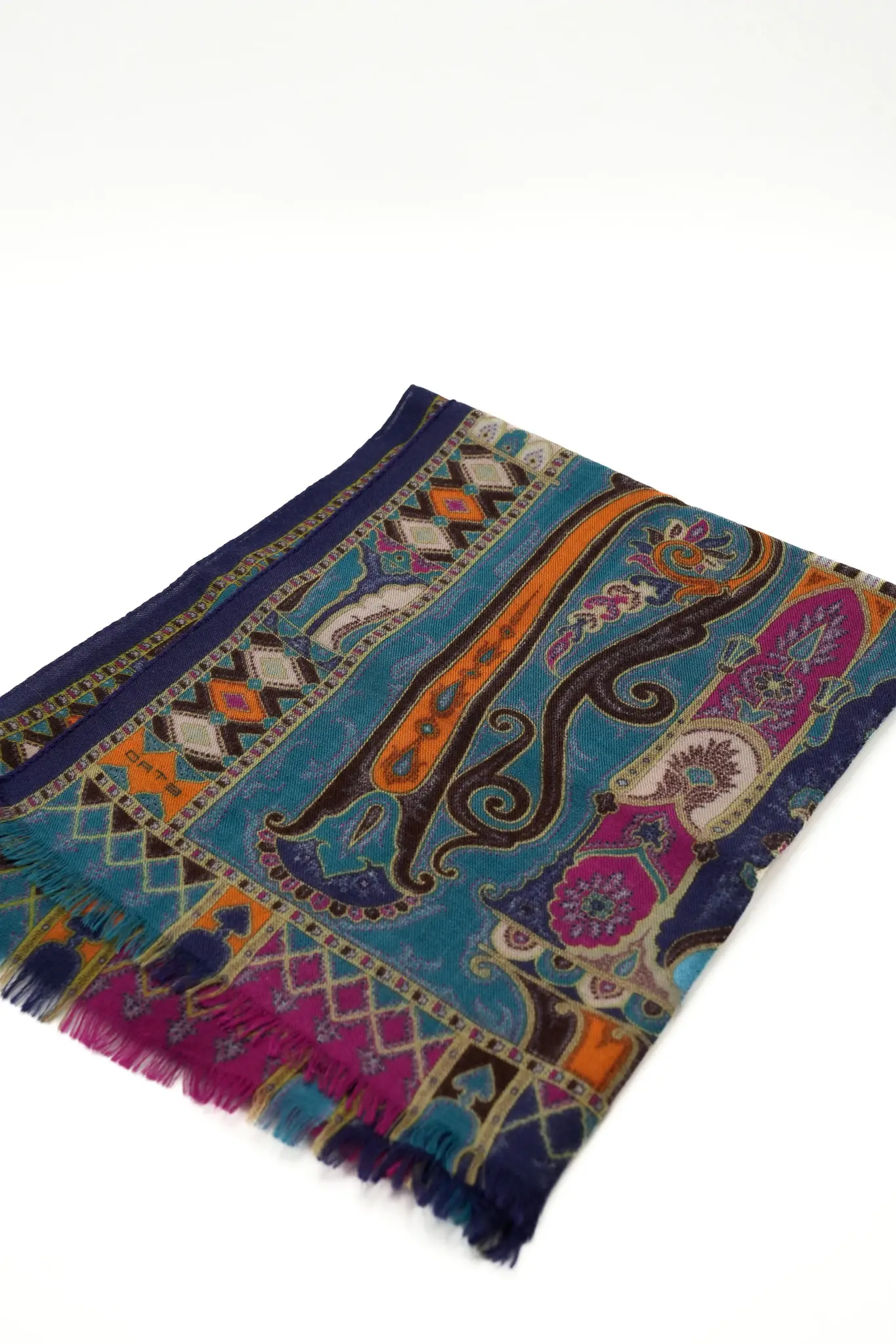 DETAY: mavi pembe tonlarında etnik desenli etro yün ipek şal