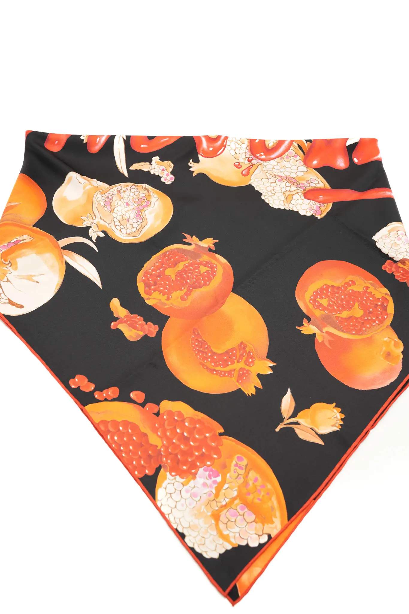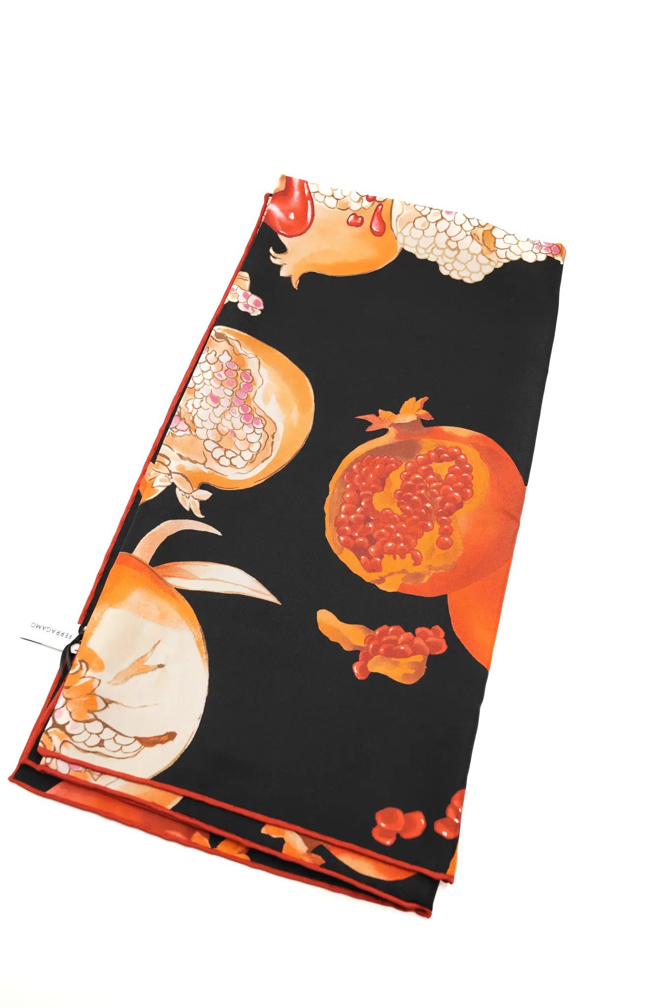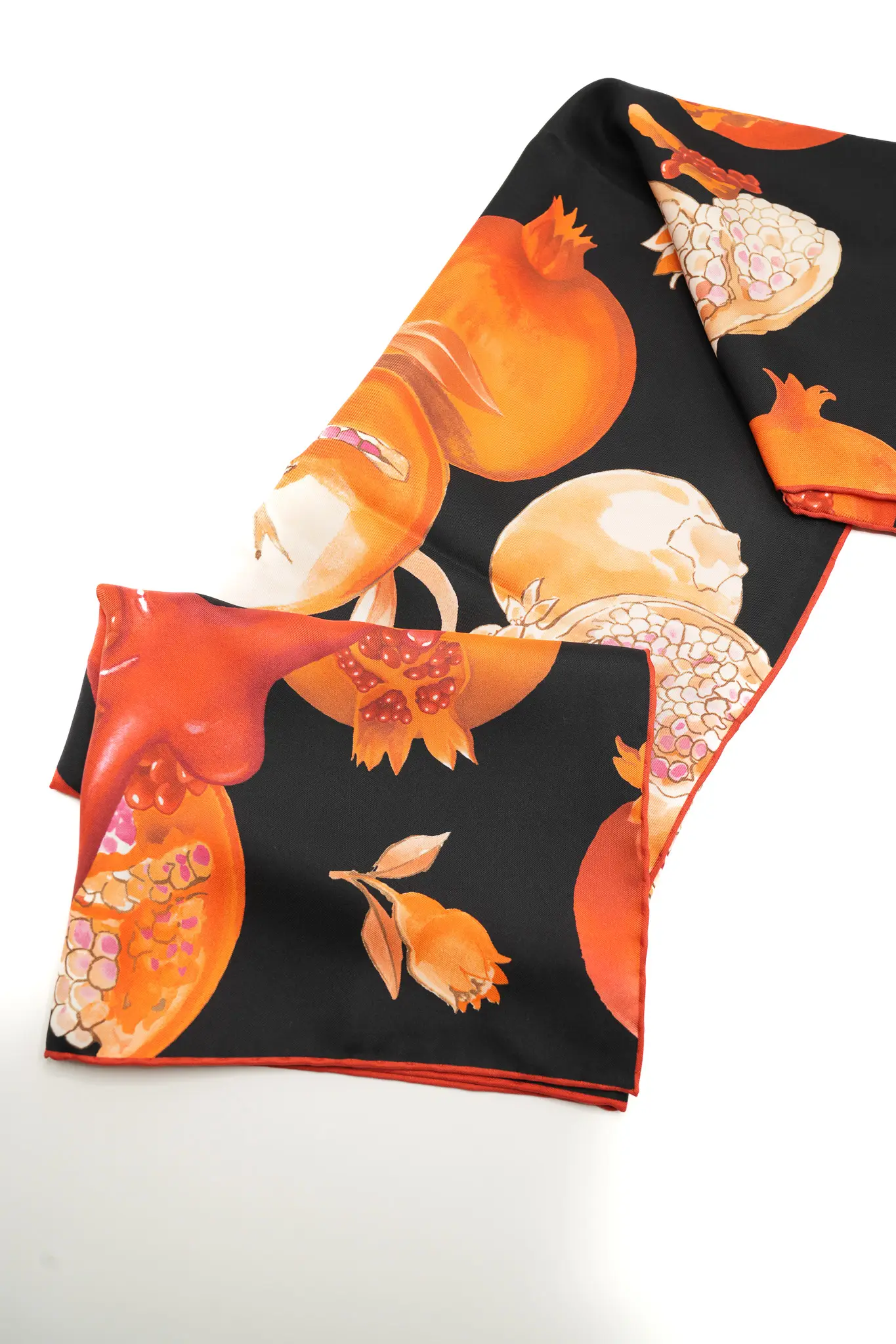 +KargoDETAY: siyah zemin üstüne turuncu tonlarında nar desenli twillipek eşarp